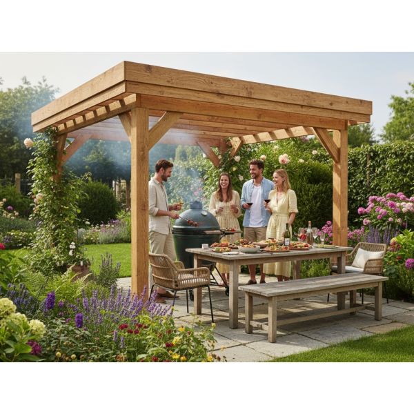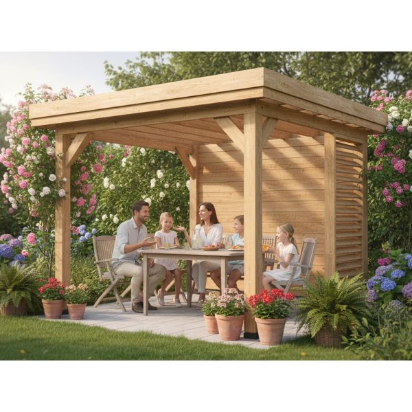 Het Tuinhuis Lund (380x380 cm) is een robuust zelfbouwpakket met massieve douglas staanders van 150x150mm. Creëer een duurzaam tuinhuis met een stoere uitstraling voor een aantrekkelijke prijs!