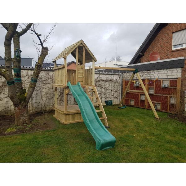 Der Spielturm 150 ist so konzipiert, dass man auch hier die Möglichkeit hat, eine Schaukel oder Kletterrampe an zu bauen.
