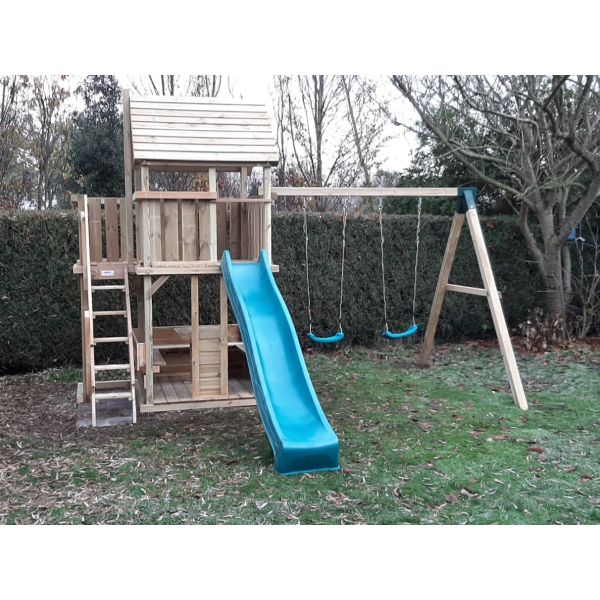 Sie können den Spielturm selbst mit zusätzlichen Teilen (Anbauschaukel, Kletterwand usw.).
