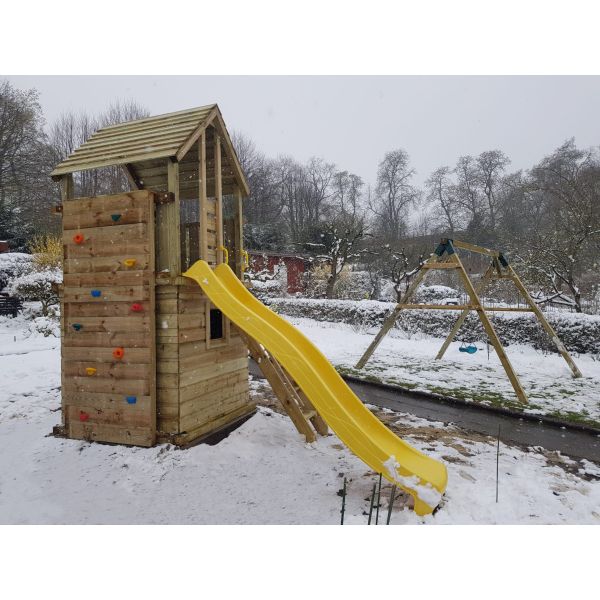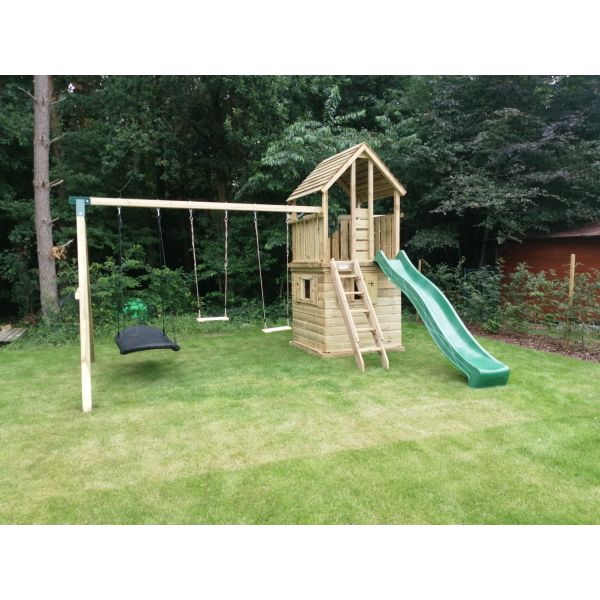 Was dieses Spielgerät wirklich besonders macht, ist die Möglichkeit zur Erweiterung. Füge eine Schaukel, Kletterwand oder ein Kletternetz hinzu, um zusätzliches Abenteuer und Spaß zu bieten. Unsere Schaukeln sind mit verschiedenen Zubehörteilen und Sitzgelegenheiten erhältlich, die du auf unserer Website entdecken kannst.
