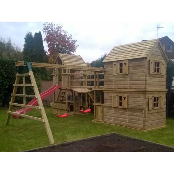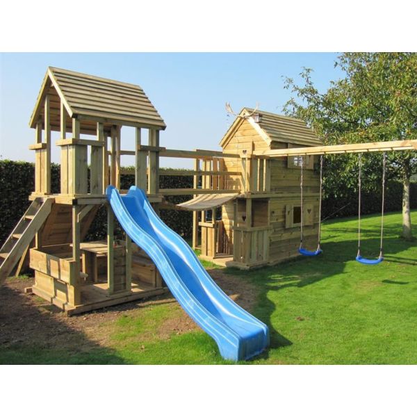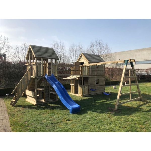 Sie können dies selbst durch zusätzliche Anbauteile (Kletternetz/Kletterwand, Anbauschaukel etc.) oder Extras (Tür, Luken etc.) ergänzen. Vergessen Sie nicht, die Schaukelsitze und einige schöne Accessoires zu bestellen!