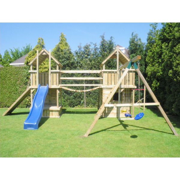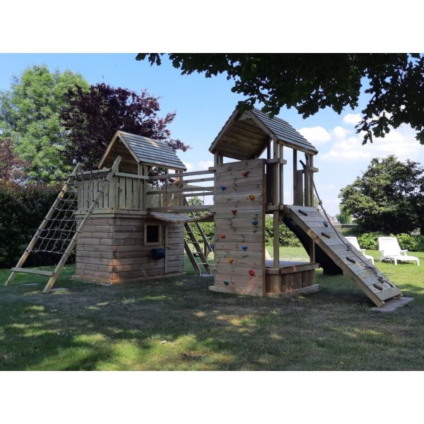 Das Hasselt Spielset ist ein Spielset mit vielen Klettermöglichkeiten. Aufgrund der vielen Erweiterungen ist dieses Spielgerät für jedes Alter geeignet.